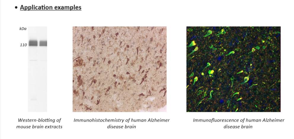 IHC:1:200 in PBS with 5% BSA (working with cell, frozen and paraffin embedded tissue)