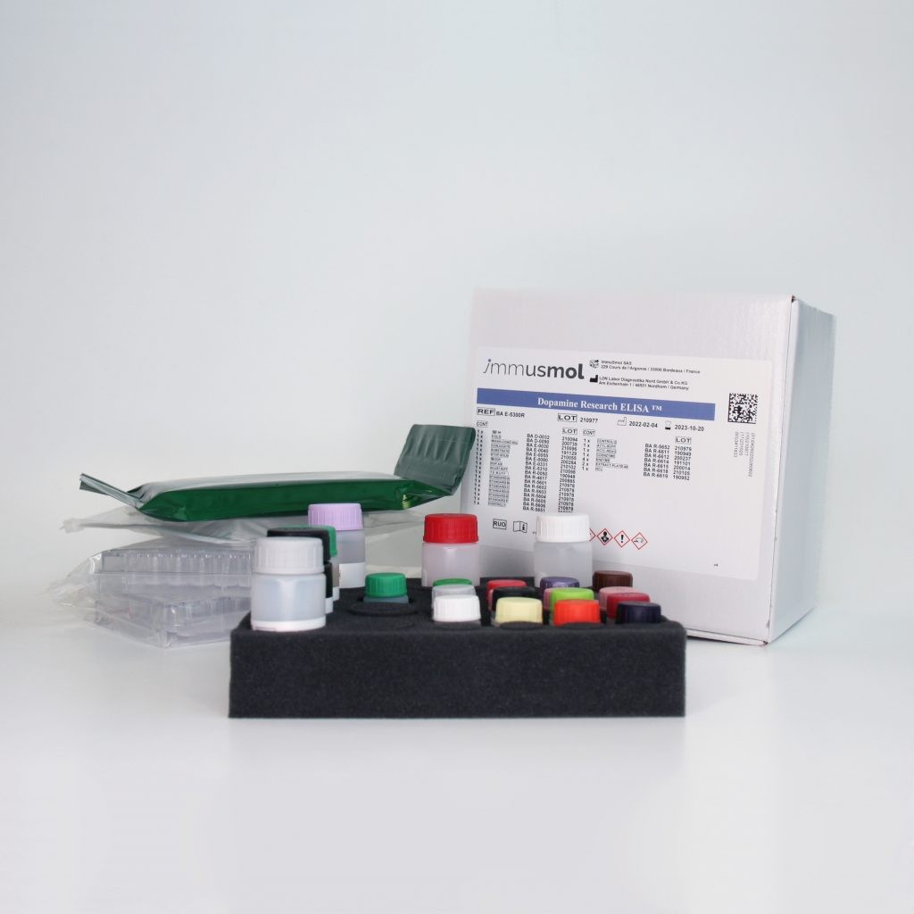 This research Dopamine ELISA kit enables the ultra-sensitive measurement of Dopamine (DA) in any biological sample. Highly flexible, the assay features a minimal sample volume as low as 1 μl, with a limit of detection at 3.3 pg/ml.