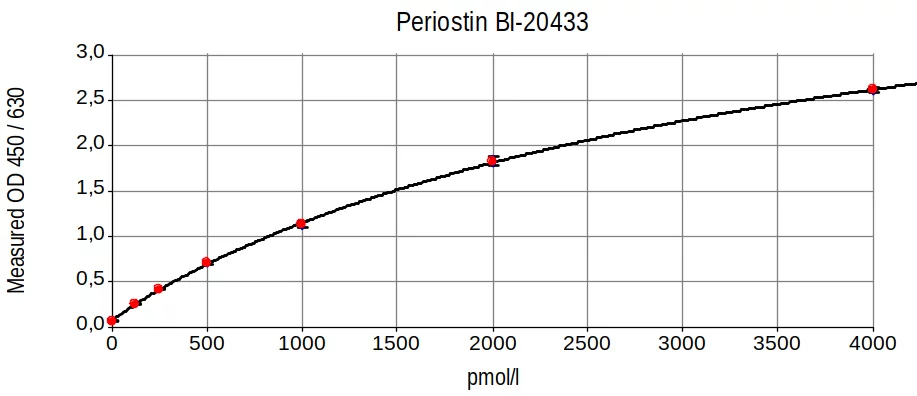 Periostin (OSF-2) is secreted as a 91 kDa homodimeric soluble extracellular matrix protein expressed in collagen-rich fibrous connective tissues. There are at least 7 isoforms of Periostin, caused by alternative splicing (http://www.uniprot.org/uniprot/Q15063). Periostin is involved in osteoblast recruitment, attachment and spreading. It has been associated with the epithelial-mesenchymal transition in cancer and with the differentiation of mesenchyme in the developing heart. Periostin has functions in osteology, tissue repair, oncology, cardiovascular and respiratory diseases, and in various inflammatory settings.