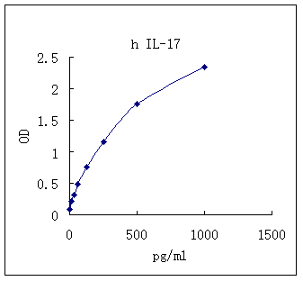 The Human IL-17 ELISA (Enzyme-Linked Immunosorbent Assay) kit is designed for detection of IL-17 in human plasma, serum, and cell culture samples.This assay employs a quantitative sandwich enzyme immunoassay technique that measures human IL-17 in approximately 3.5 hours. A polyclonal antibody specific for human IL-17 has been pre-coated onto a 96-well microplate with removable strips. IL-17 in standards and samples is sandwiched by the immobilized antibody and a biotinylated polyclonal antibody specific for human IL-17, which is recognized by a streptavidin-peroxidase (SP) conjugate. All unbound material is washed away and a peroxidase enzyme substrate is added. The color development is stopped and the intensity of the color is measured.