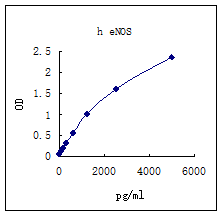 The Human eNOS ELISA (Enzyme-Linked Immunosorbent Assay) kit is designed for detection of eNOS in human plasma, serum, and cell culture samples.This assay employs a quantitative sandwich enzyme immunoassay technique that measures human eNOS in approximately 3.5 hours. A polyclonal antibody specific for human eNOS has been pre-coated onto a 96-well microplate with removable strips. eNOS in standards and samples is sandwiched by the immobilized antibody and a biotinylated polyclonal antibody specific for human eNOS, which is recognized by a streptavidin-peroxidase (SP) conjugate. All unbound material is washed away and a peroxidase enzyme substrate is added. The color development is stopped and the intensity of the color is measured.