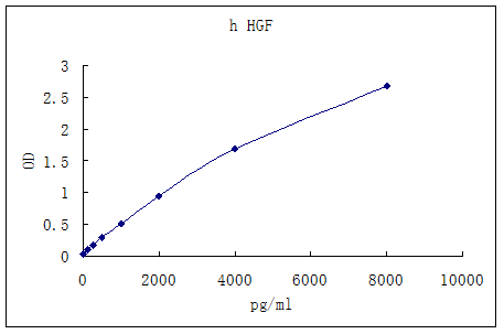 The Human HGF ELISA (Enzyme-Linked Immunosorbent Assay) kit is designed for detection of HGF in human plasma, serum, and cell culture samples.This assay employs a quantitative sandwich enzyme immunoassay technique that measures human HGF in approximately 3.5 hours. A polyclonal antibody specific for human HGF has been pre-coated onto a 96-well microplate with removable strips. HGF in standards and samples is sandwiched by the immobilized antibody and a biotinylated polyclonal antibody specific for human HGF, which is recognized by a streptavidin-peroxidase (SP) conjugate. All unbound material is washed away and a peroxidase enzyme substrate is added. The color development is stopped and the intensity of the color is measured.