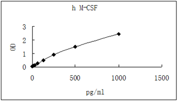 The Human M-CSF ELISA (Enzyme-Linked Immunosorbent Assay) kit is designed for detection of M-CSF in human plasma, serum, and cell culture samples.This assay employs a quantitative sandwich enzyme immunoassay technique that measures human M-CSF in approximately 3.5 hours. A polyclonal antibody specific for human M-CSF has been pre-coated onto a 96-well microplate with removable strips. M-CSF in standards and samples is sandwiched by the immobilized antibody and a biotinylated polyclonal antibody specific for human M-CSF, which is recognized by a streptavidin-peroxidase (SP) conjugate. All unbound material is washed away and a peroxidase enzyme substrate is added. The color development is stopped and the intensity of the color is measured.