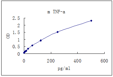 The mouse TNF-α ELISA (Enzyme-Linked Immunosorbent Assay) kit is designed for detection of TNF-α in mouse plasma, serum, and cell culture samples.This assay employs a quantitative sandwich enzyme immunoassay technique that measures mouse TNF-α in approximately 3 hours. A polyclonal antibody specific form mouse TNF-α has been pre-coated onto a 96-well microplate with removable strips. TNF-α in standards and samples is sandwiched by the immobilized antibody and a biotinylated polyclonal antibody specific for mouse TNF-α, which is recognized by a streptavidin-peroxidase (SP) conjugate. All unbound material is washed away and a peroxidase enzyme substrate is added. The color development is stopped and the intensity of the color is measured.