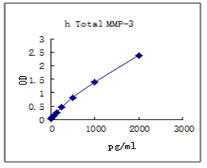 The Human Total MMP-3 ELISA (Enzyme-Linked Immunosorbent Assay) kit is designed for detection of Total MMP-3 in human plasma, serum, and cell culture samples.This assay employs a quantitative sandwich enzyme immunoassay technique that measures human Total MMP-3 in approximately 3.5 hours. A polyclonal antibody specific for human Total MMP-3 has been pre-coated onto a 96-well microplate with removable strips. Total MMP-3 in standards and samples is sandwiched by the immobilized antibody and a biotinylated polyclonal antibody specific for human Total MMP-3, which is recognized by a streptavidin-peroxidase (SP) conjugate. All unbound material is washed away and a peroxidase enzyme substrate is added. The color development is stopped and the intensity of the color is measured.