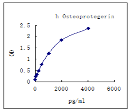 The Human Osteoprotegerin/TNFRSF11B ELISA (Enzyme-Linked Immunosorbent Assay) kit is designed for detection of Osteoprotegerin/TNFRSF11B in human plasma, serum, and cell culture samples.This assay employs a quantitative sandwich enzyme immunoassay technique that measures human Osteoprotegerin/TNFRSF11B in approximately 5 hours. A polyclonal antibody specific for human Osteoprotegerin/TNFRSF11B has been pre-coated onto a 96-well microplate with removable strips. Osteoprotegerin/TNFRSF11B in standards and samples is sandwiched by the immobilized antibody and a biotinylated polyclonal antibody specific for human Osteoprotegerin/TNFRSF11B, which is recognized by a streptavidin-peroxidase (SP) conjugate. All unbound material is washed away and a peroxidase enzyme substrate is added. The color development is stopped and the intensity of the color is measured.