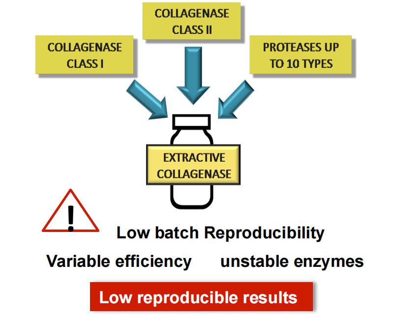 此種混合物的成分和殘余類胰蛋白酶活性的可變性決定了其不可預(yù)測的酶效率、低批次一致性和低穩(wěn)定性,這可能導(dǎo)致細(xì)胞提取效率低、實(shí)驗(yàn)的低重復(fù)性。