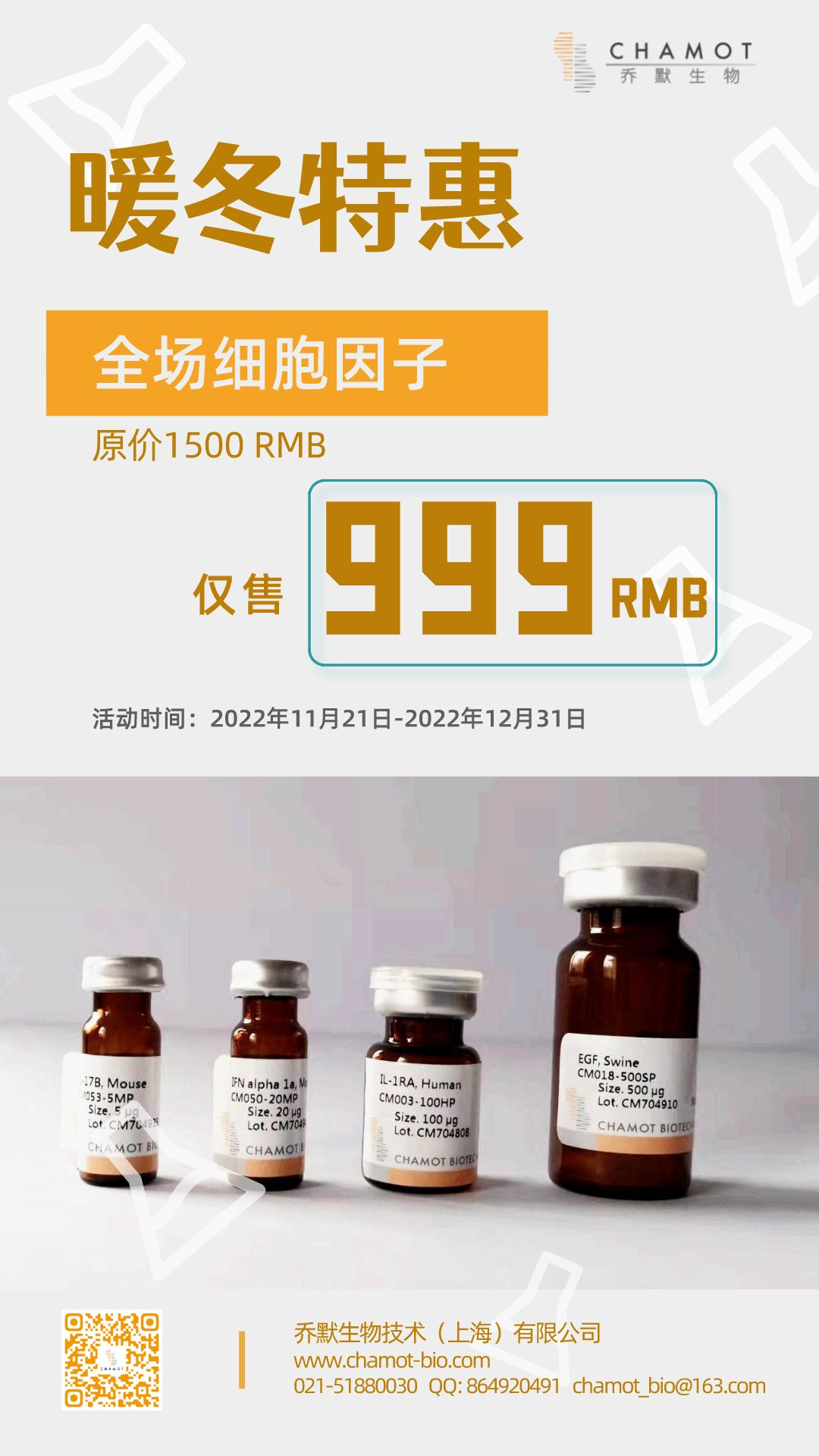 活動(dòng)內(nèi)容:喬默全線重組細(xì)胞因子,售價(jià)1500RMB規(guī)格產(chǎn)品,購(gòu)買即可享受特惠價(jià)999RMB。